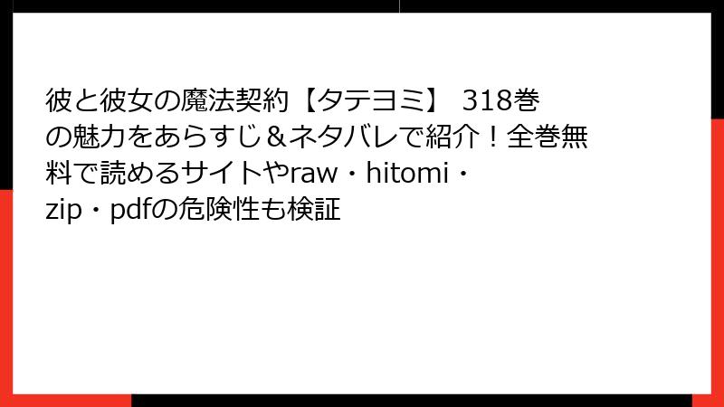こんにちは、漫画愛好家ブロガーです! comicoで絶賛連載中のフルカラータテヨミ作品『彼と彼女の魔法契約【タテヨミ】』。318巻の感動完結に胸熱ですが、「raw」「hitomi」「zip」「pdf」「漫画バンク」などの海賊版サイトで無料読みしようとする誘惑…わかります。でも、ちょっと待って! 今日はその甘い罠の裏側にある本物のリスクを、ガッツリ掘り下げます。法的・セキュリティ・倫理・体験の4軸から、テーブルやリストでわかりやすく解説。読了後には「正規ルート一択!」と心に誓うはずです。それでは、深淵を覗いてみましょう。