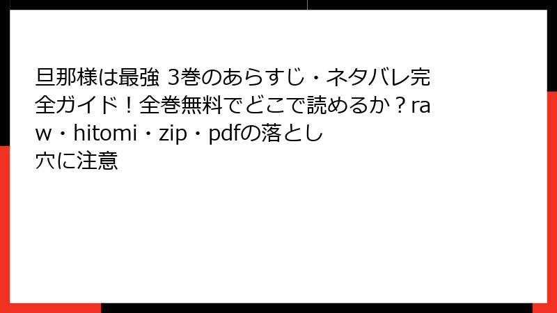 旦那様は最強 3巻のあらすじ・ネタバレ完全ガイド!全巻無料でどこで読めるか?raw・hitomi・zip・pdfの落とし穴に注意