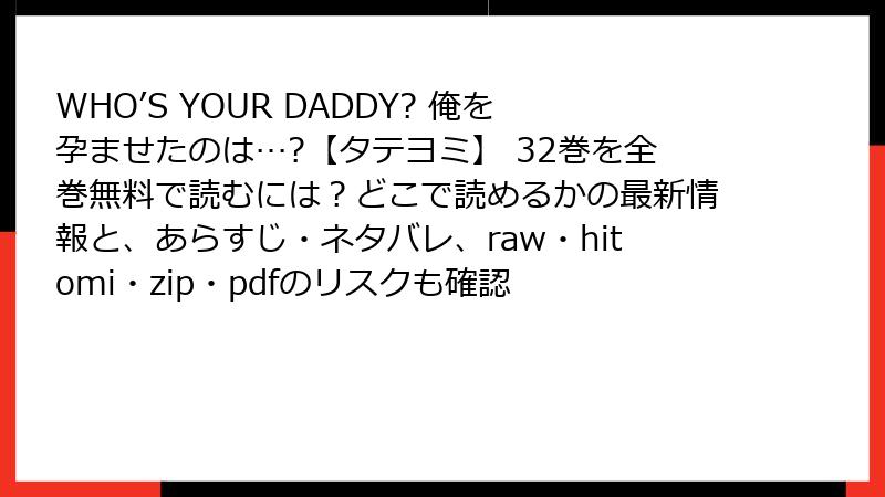 - 【警告】WHO’S YOUR DADDY? 俺を孕ませたのは…? を raw・hitomi・nhentai・漫画バンク・漫画村系海賊版で読むと、本当にヤバい理由