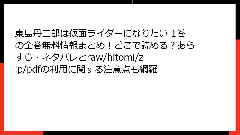 こんにちは、電子書籍ハンターのヒロです! 2025年秋にアニメ化で大ブレイク中の『東島丹三郎は仮面ライダーになりたい』。柴田ヨクサル先生の熱きアクションが、スマホ一つでいつでも楽しめる時代になりましたよね? 今回は、指定された人気サービスを中心に、どこで全巻(既刊16巻)読めるかを徹底調査。試し読みの有無、価格の目安、キャンペーン情報まで詳しくお届けします。アニメの影響で配信強化中なので、チャンスですよ! ネタバレなしで、読み応え満点のガイドに仕上げました。それでは、ベルトを締めてスタート!