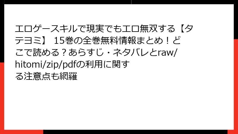 こんにちは、マンガ好きの皆さん! 今日のブログ記事では、F.Wとコルトゥーンによる人気エロティックコミック『エロゲースキルで現実でもエロ無双する【タテヨミ】』の15巻にスポットを当ててみます。このシリーズは、仮想現実のエロゲースキルが現実世界に反映されるという斬新な設定で、主人公の戸高晋弥が次々と美女たちを魅了していく様子が魅力満載。タテヨミ形式で読みやすいのもポイントです。15巻では、物語がさらに過激でスリリングな方向へ進化し、読者の興奮を最大限に引き出します。今回は、この巻のあらすじを詳しく掘り下げつつ、魅力的なシーンやキャラクターの成長を分析。ネタバレを最小限に抑えつつ、読み応えのある内容でお届けします。さっそく本題へどうぞ!
