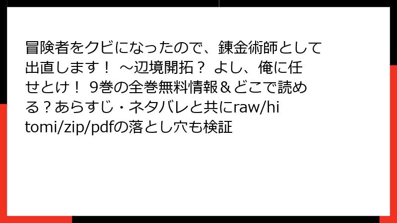【警告】「冒険者をクビになったので、錬金術師として出直します!」をraw・hitomi・漫画バンクなどで読むとヤバい理由