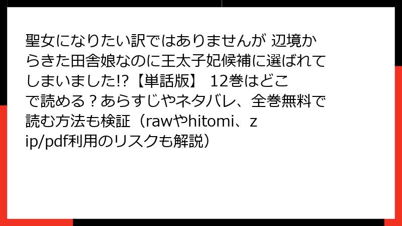 聖女になりたい訳ではありませんが 辺境からきた田舎娘なのに王太子妃候補に選ばれてしまいました!?【単話版】 12巻はどこで読める?あらすじやネタバレ、全巻無料で読む方法も検証(rawやhitomi、zip/pdf利用のリスクも解説)