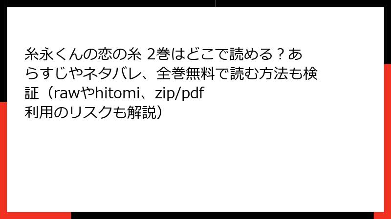 『糸永くんの恋の糸』をraw・hitomi・漫画バンク系海賊版サイトで読む本当のリスクを徹底解説【2025年最新】