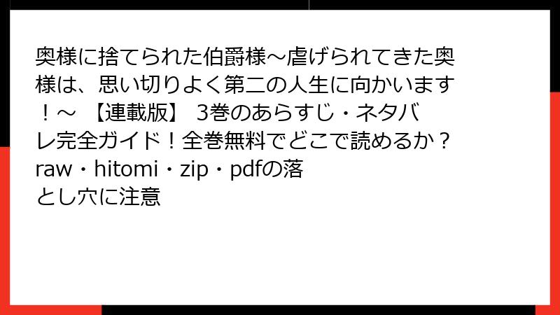 - 『奥様に捨てられた伯爵様』をraw・hitomi・漫画バンクなどで読むと起こること──海賊版サイトの本当のリスクを全部教えます