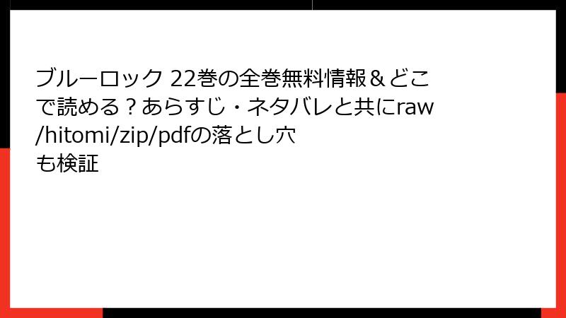 『ブルーロック』を海賊版(raw・hitomi・漫画バンク・zip・pdf)で読むと、確実にヤバい理由