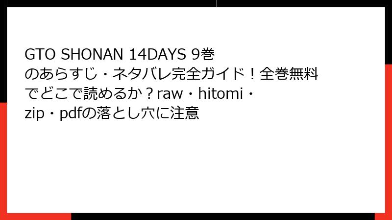 「GTO SHONAN 14DAYS」をraw・hitomi・漫画バンクなどで読むと何が起こる?海賊版のリアルなリスクを徹底解説