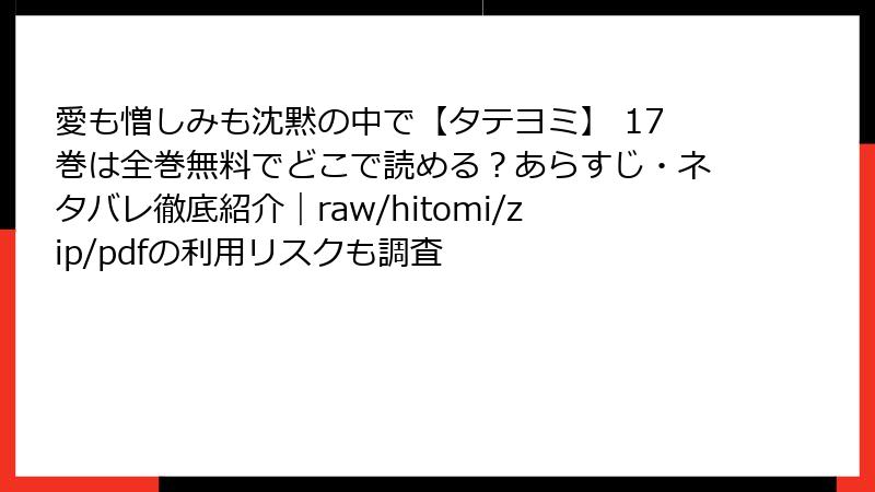 『愛も憎しみも沈黙の中で』をraw・hitomi・漫画バンク・zip・pdfなどで読むと、取り返しのつかないことになる本当の理由
