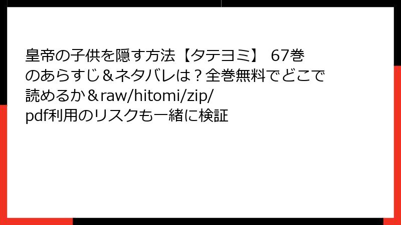 こんにちは、Webtoon大好きブロガーです。ピッコマで毎週楽しみにしている『皇帝の子供を隠す方法』ですが、最近「raw 皇帝の子供を隠す方法」「漫画バンク 皇帝の子供」「hitomi 皇帝の子供」などで検索する人が急増しているようです。「無料で最新話まで一気読みしたい!」という気持ちはすごく分かります。でも、正直に言います。海賊版サイトを使うのは、あなたのスマホ・PC、そしてお財布と精神を確実に傷つけます。今回は実際に起きた事例を交えながら、リスクをガチで詳しくお伝えします。後悔する前に読んでください!