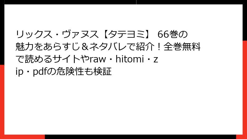 人気のファンタジーBL漫画『リックス・ヴァヌス【タテヨミ】』。魅力的なストーリーとキャラクターに引き込まれ、続きが気になってしまう読者も多いでしょう。しかし、raw、hitomi、zip、pdf、漫画バンクなどの海賊版サイトで無料で読もうとするのは、大きな間違いです。これらのサイトは違法にアップロードされたコンテンツを提供しており、利用することでさまざまなリスクを負うことになります。本記事では、海賊版サイトを利用する危険性を詳しく掘り下げ、なぜ避けるべきかをブログ形式で解説します。法的問題からセキュリティの脅威まで、読み応えのある内容でお届けしますので、ぜひ最後までお読みください。