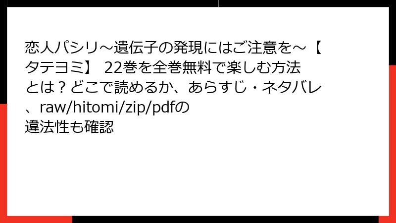 人気のオメガバースBL漫画『恋人パシリ~遺伝子の発現にはご注意を~』を、raw/hitomi/zip/pdf/漫画バンクなどの海賊版サイトで無料で読みたいと思う人もいるかもしれません。しかし、そんな行為には深刻なリスクが伴います。この記事では、法的・セキュリティ・プライバシー・倫理的側面から詳しく掘り下げ、なぜ正規ルートをおすすめするのかをブログ風に解説。海賊版の甘い誘惑に負けないための知識を、読み応えたっぷりでお届けします。