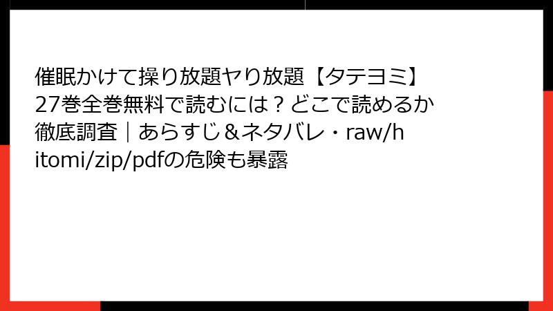 3. 『催眠かけて操り放題ヤり放題【タテヨミ】 27巻』を海賊版サイトで読むリスク:raw/hitomi/zip/pdf/漫画バンクなどの落とし穴