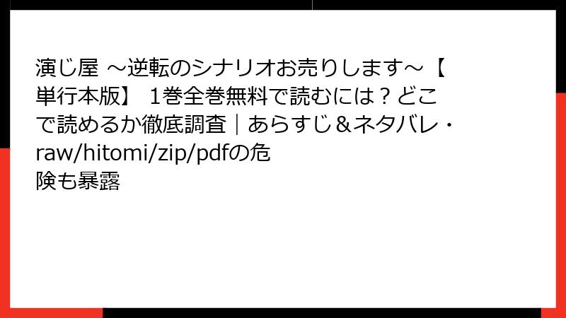 演じ屋 ~逆転のシナリオお売りします~ 1巻を海賊版サイトで読むリスク:raw/hitomi/zip/pdf/漫画バンクなどの危険性