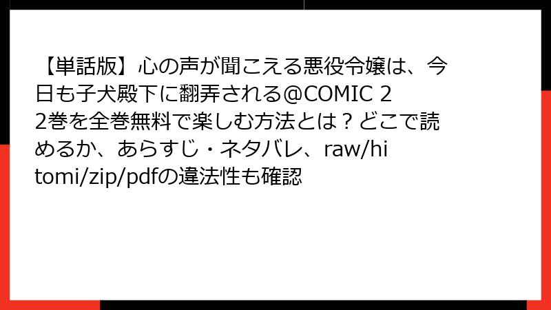 【単話版】心の声が聞こえる悪役令嬢は、今日も子犬殿下に翻弄される@COMIC 22巻を全巻無料で楽しむ方法とは?どこで読めるか、あらすじ・ネタバレ、raw/hitomi/zip/pdfの違法性も確認