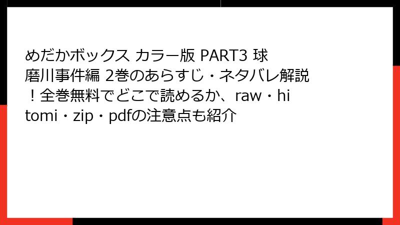 『めだかボックス カラー版 PART3 球磨川事件編 2巻』のような人気漫画を、raw、hitomi、zip、pdf、漫画バンクなどの海賊版サイトで読む行為は、一見手軽に見えますが、多大なリスクを伴います。これらのサイトは著作権を無視した違法アップロードが主流で、利用者が知らずにトラブルに巻き込まれるケースが少なくありません。本記事では、そのリスクを法的、セキュリティ、品質、経済的・倫理的観点から詳しく解説します。海賊版利用は避け、クリエイターを尊重した正規ルートを選ぶことを強くおすすめします。