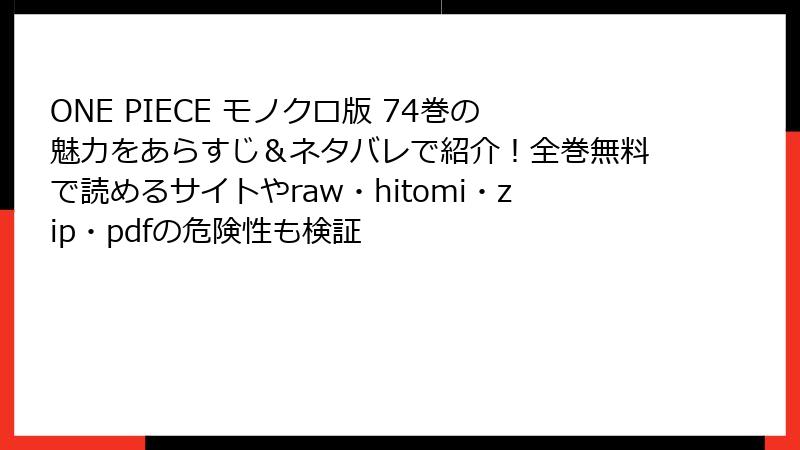 - ONE PIECE モノクロ版 74巻を海賊版サイトで読むリスク:知っておくべき危険性