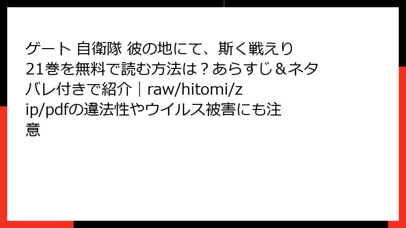 人気の異世界ファンタジー漫画『ゲート 自衛隊 彼の地にて、斯く戦えり』の21巻が、シリーズの新たな転機を描き出しています。この巻では、日本と帝国正統政府の間で講和条約が締結されるものの、それが新たな戦いの幕開けとなるという、緊張感あふれる展開が繰り広げられます。原作の壮大なスケールはそのままに、外交と軍事の綾が複雑に絡み合う政治劇が中心。ファンの間で話題のシェリーの暗躍や、ゾルザル皇太子討伐の進展を中心に、読み応え抜群のストーリーです。以下では、巻の構造に沿って詳細に振り返ってみましょう。