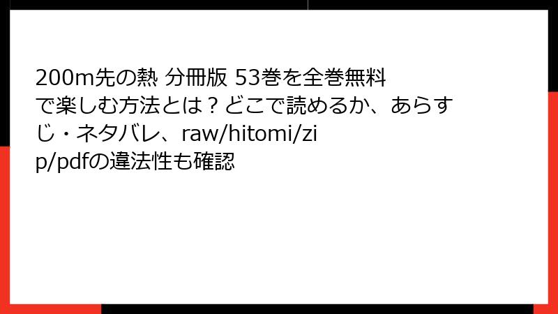 200m先の熱 分冊版 53巻を全巻無料で楽しむ方法とは?どこで読めるか、あらすじ・ネタバレ、raw/hitomi/zip/pdfの違法性も確認