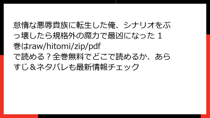 注意:この記事は『怠惰な悪辱貴族に転生した俺、シナリオをぶっ壊したら規格外の魔力で最凶になった』1巻の詳細なネタバレを含みます。未読の方はここでバックボタンを押してください! 人気転生ファンタジーのコミカライズ版1巻は、悪役視点のシナリオ破壊が最大の見どころ。主人公ヴァイスの努力と成長が、ゲーム世界の運命をひっくり返す過程が熱い! ここでは、転生の真相から学園入学後の衝撃イベントまで、キーシーンを徹底解剖。キャラクターの隠された関係性や、規格外魔力の覚醒秘話も暴露します。読み進めながら、ヴァイスの「最凶」化に震えてください。