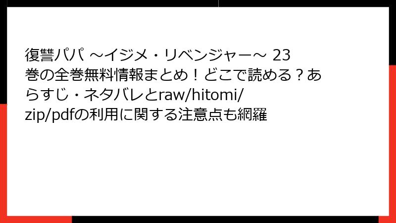 復讐パパ ~イジメ・リベンジャー~ 23巻の全巻無料情報まとめ!どこで読める?あらすじ・ネタバレとraw/hitomi/zip/pdfの利用に関する注意点も網羅