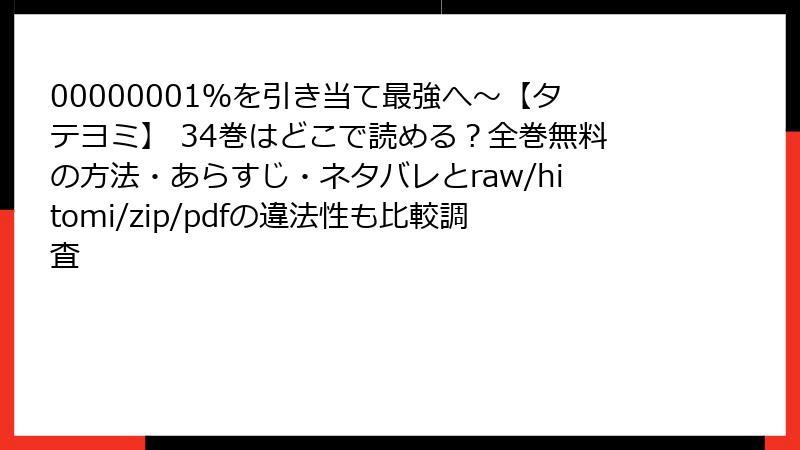 00000001%を引き当て最強へ~【タテヨミ】 34巻はどこで読める?全巻無料の方法・あらすじ・ネタバレとraw/hitomi/zip/pdfの違法性も比較調査