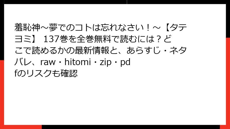 羞恥神~夢でのコトは忘れなさい!~ 137巻を海賊版サイトで読むリスク徹底解説