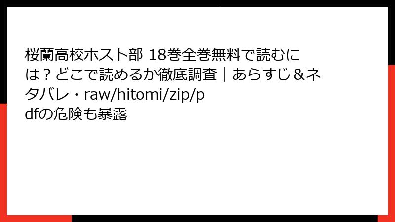 どのサービスも高品質配信ですが、好みのUIや割引で選んで。『桜蘭高校ホスト部』18巻は、別れと再会の感動が電子書籍で蘇る一冊。皆さんの読み方、コメントで教えてくださいね!