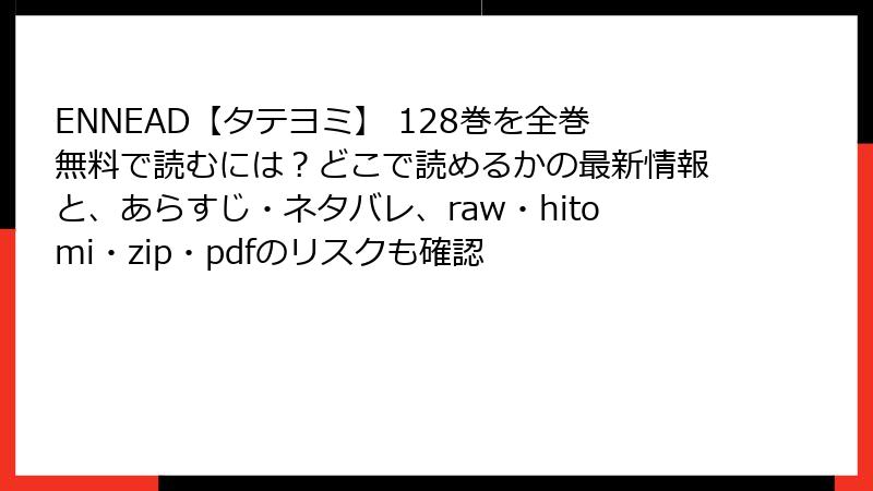 海賊版サイトで『ENNEAD』128巻を読むのは、法的・セキュリティ・プライバシー・品質の多重リスクを伴います。2025年現在、監視技術の進化で摘発が増加しており、無視できない脅威です。代わりに、正規プラットフォームを利用し、作者を応援する姿勢が重要。リスクを知り、賢い選択を心がけましょう。この記事が、海賊版の危険性を再認識するきっかけになれば幸いです。