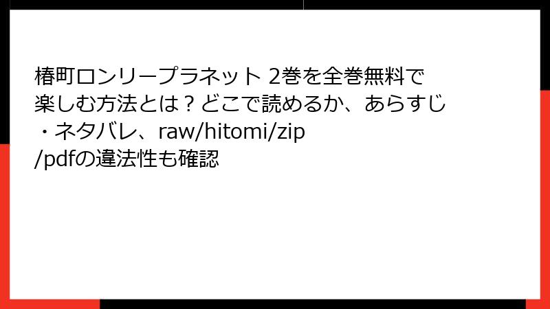 椿町ロンリープラネットをraw/hitomi/zip/pdf/漫画バンクなどの海賊版サイトで読むリスク:法的・セキュリティ面の深刻な危険性