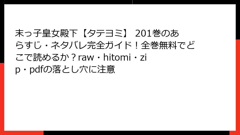 こんにちは、漫画ファンで著作権意識の高いブロガーです! 人気のファンタジー作品末っ子皇女殿下【タテヨミ】は、転生皇女の溺愛ストーリーが魅力ですが、海賊版サイトで無料読みを検討している人もいるかも。そんなあなたに、raw、hitomi、zip、pdf、漫画バンクなどの違法サイトを利用するリスクを詳しくお伝えします。リスクを知って、正規ルートを選びましょう。ネタバレなしで、読み応えある解説を進めていきます。