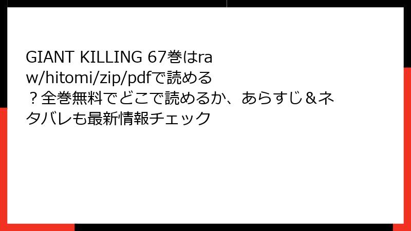 サッカー漫画の金字塔として長年愛されてきた『GIANT KILLING』。監督・達海猛が率いる弱小クラブETU(イースト・トーキョー・ユナイテッド)が、奇跡のジャイアント・キリングを繰り広げる物語は、読者の心を掴んで離しません。67巻では、激闘のリーグ戦が終わりを迎え、チームの絆と成長が感動的に描かれます。この巻は、単なる試合の結末ではなく、選手たちの内面的な変化やサポーターとの絆を深く掘り下げ、シリーズの新たな転機を示唆する内容となっています。以下では、ネタバレを交えつつ、詳細なあらすじをセクションごとに解説します。サッカーファン必見の感動の1冊です!