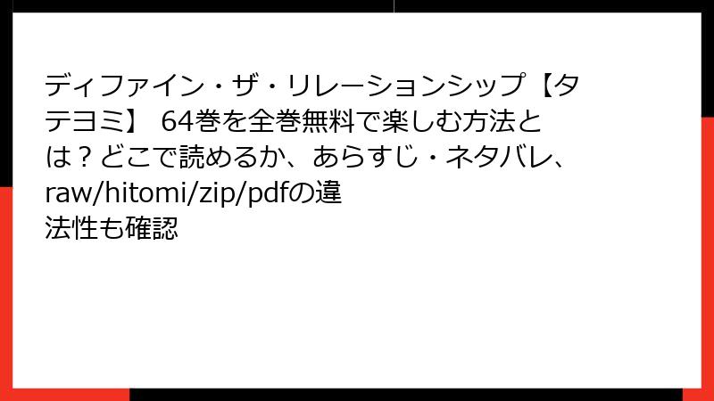 今回は、めちゃくちゃ好きな『ディファイン・ザ・リレーションシップ』を「無料で読みたい!」という気持ちが暴走して、海賊版サイト(raw、nhentai、hitomi、漫画バンク、漫画raw、センマンガ、zip、pdfなど)に手を出してしまうリスクを、容赦なく全部ぶっちゃけます。