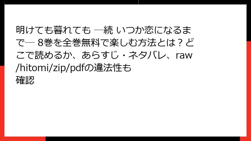 - 未来の期待: 次巻9巻でこれらのサービスに追加されるかも? 続報待ち!
