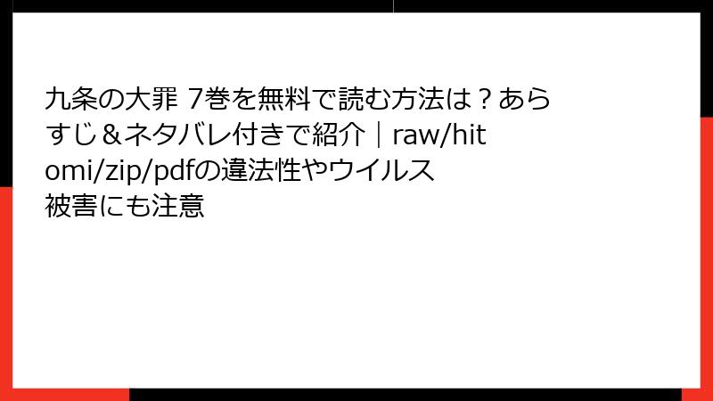 【絶対にやめて】『九条の大罪』をraw・漫画バンク・hitomi・ZIP・PDF海賊版で読むと、本当にヤバいことになる理由