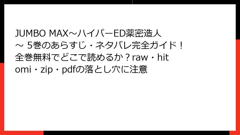 JUMBO MAX~ハイパーED薬密造人~ 5巻のあらすじ・ネタバレ完全ガイド!全巻無料でどこで読めるか?raw・hitomi・zip・pdfの落とし穴に注意