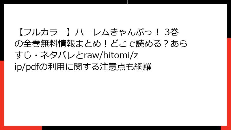 【警告】ハーレムきゃんぷっ!を「raw」「nhentai」「漫画バンク」「pdf」「zip」で読むと、確実にヤバいことになります