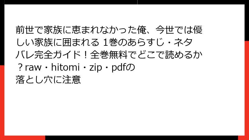 【警告】「前世で家族に恵まれなかった俺、今世では優しい家族に囲まれる」をraw・hitomi・漫画バンクなどで読むと、本当にヤバい理由