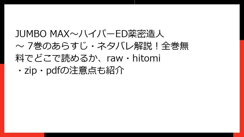 JUMBO MAX~ハイパーED薬密造人~ 7巻のあらすじ・ネタバレ解説!全巻無料でどこで読めるか、raw・hitomi・zip・pdfの注意点も紹介