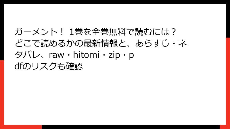 「新刊すぐ読みたい」「お金かけたくない」気持ち、めっちゃわかります。でも、raw、nhentai、hitomi.la、漫画バンク、漫画raw、センマンガ、13DL.net、Manga Zip などの海賊版サイトで『ガーメント!』を読むのは、正直かなり危険です。