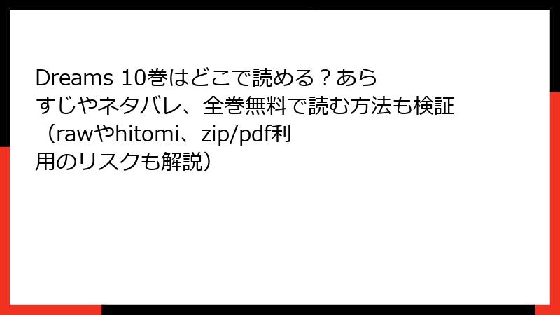 Dreams 10巻はどこで読める?あらすじやネタバレ、全巻無料で読む方法も検証(rawやhitomi、zip/pdf利用のリスクも解説)