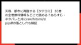 • サイトの不安定さ: DMCA(デジタルミレニアム著作権法)による削除通知で、サイトが突然閉鎖される。人気シリーズのように『今日から俺は!!』が対象になると、コンテンツが消える。