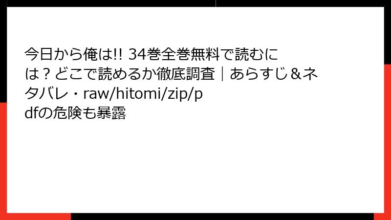 こんにちは、漫画ファン向けの注意喚起記事です。人気ヤンキーコメディ『今日から俺は!!』を、raw、hitomi、zip、pdf、漫画バンクなどの海賊版サイトで読むことのリスクについて、今回は徹底的に掘り下げます。これらのサイトは無料でアクセスしやすく魅力的に見えますが、実はさまざまな危険が潜んでいます。法的問題からセキュリティの脅威、品質の低下まで、ネガティブな側面を詳しく解説。合法的な手段で楽しむことをおすすめしますが、まずはリスクを知っておきましょう。それでは、各カテゴリごとに分けていきます。