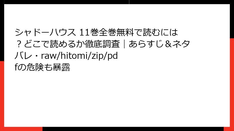 人気マンガ『シャドーハウス』11巻は、影の住人たちの複雑な物語が魅力ですが、正規ルート以外で入手しようとする人が少なくありません。特にraw、hitomi、zip、pdf、漫画バンクなどの海賊版サイトを利用する場合、さまざまなリスクが伴います。これらのサイトは著作権を無視した違法アップロードが横行し、ユーザーをトラブルに巻き込む可能性が高いのです。この記事では、海賊版サイトで漫画を読むリスクを詳しく解説。法的問題からセキュリティの脅威、さらには倫理的な側面まで、読み応えのある形で掘り下げます。海賊版の利用は一時的な便利さ以上の損失を招くことを、ぜひ知っておいてください。
