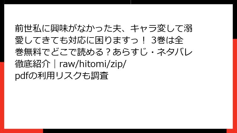 3. 前世私に興味がなかった夫、キャラ変して溺愛してきても対応に困りますっ! をraw/hitomi/zip/pdf/漫画バンクなどの海賊版サイトで読むリスク