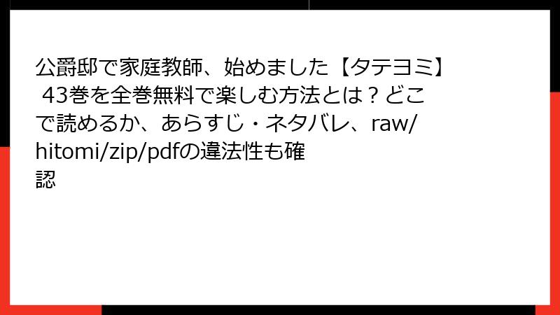 最近「公爵邸で家庭教師、始めました」の最新話が気になりすぎて、つい「raw」「nhentai」「漫画バンク」「zip」「pdf」などで検索しちゃう気持ち、めっちゃ分かります。でも、正直に言います。**その一瞬の楽さの代償がデカすぎる**んです。