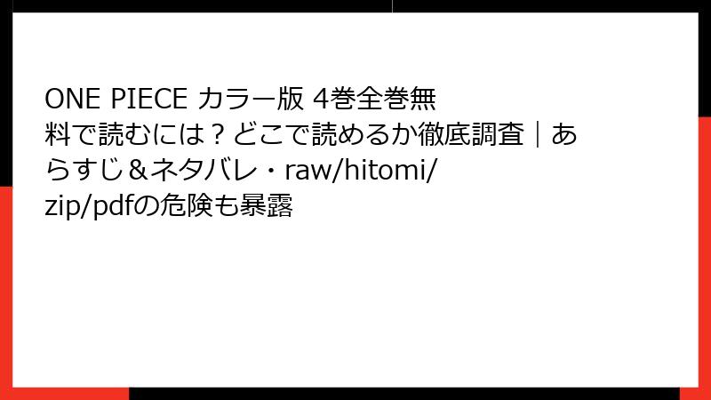 ONE PIECE カラー版 4巻 電子書籍版が読めるサービス完全ガイド!2025年最新配信状況を徹底チェック