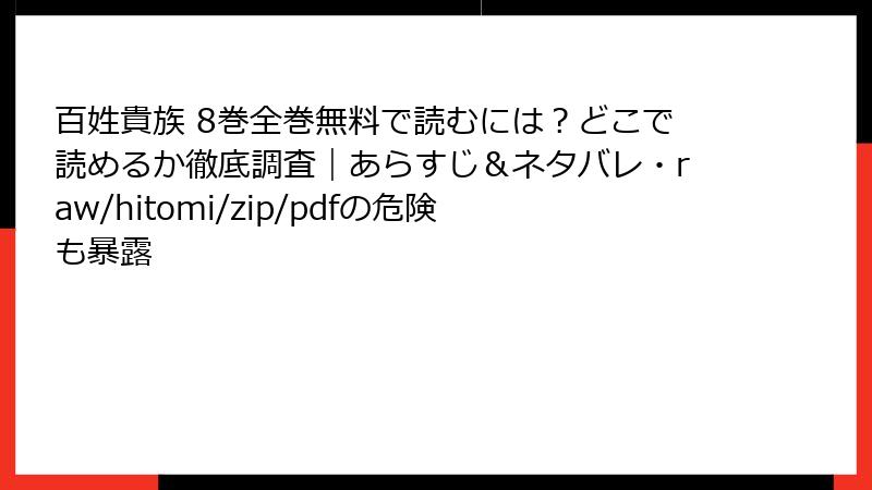 でも、raw、nhentai、hitomi、漫画バンク、manga raw、センサーなしZIP、違法PDFサイトで『百姓貴族』を探すのは、本当に危険すぎます。