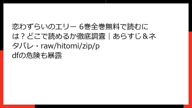 3. 恋わずらいのエリー 6巻を海賊版サイトで読むリスク:raw/hitomi/zip/pdf/漫画バンクなどの危険性