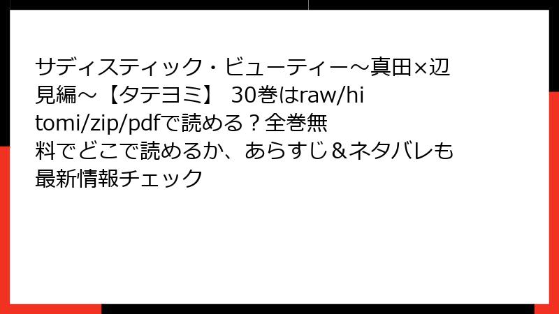 サディスティック・ビューティー~真田×辺見編~【タテヨミ】 30巻はraw/hitomi/zip/pdfで読める?全巻無料でどこで読めるか、あらすじ&ネタバレも最新情報チェック