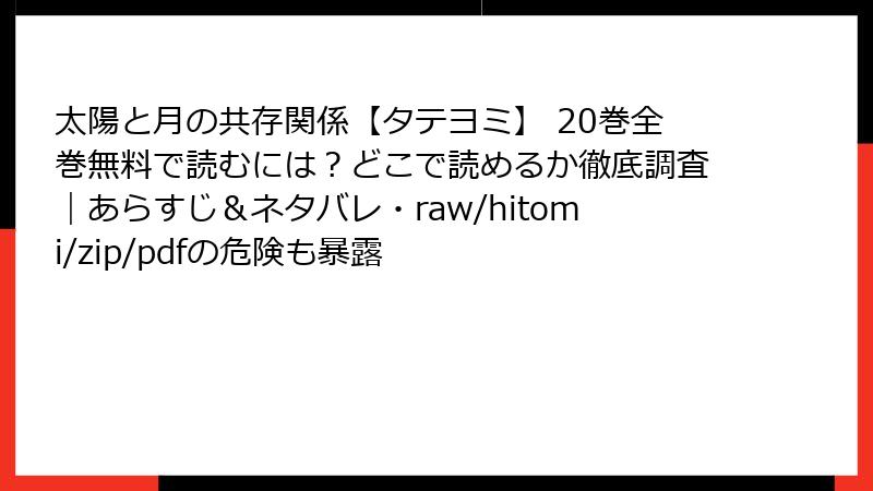 いかがでしたか? この記事で、海賊版のリスクを再認識いただけたでしょうか。『太陽と月の共存関係』を心から楽しむためにも、公式ルートを推奨します。皆さんの賢い選択が、業界を支える力になりますよ! 次回のブログでお会いしましょう。